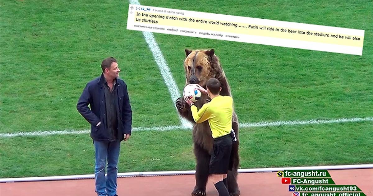 Перед матчем третьего футбольного дивизиона России медведь передал мяч судье. Видео быстро стало вирусным и попало на reddit – «главную страницу интернета». Вот несколько самых веселых комментариев оттуда.