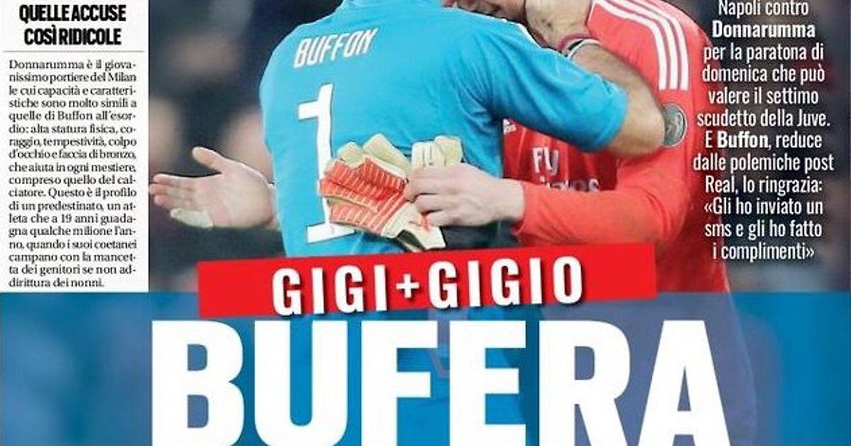 Болельщики «Наполи» против Доннаруммы из-за воскресного сэйва, который может принести седьмое Скудетто «Юве». И Буффон, отошедший от полемики после «Реала», поблагодарил его: «Я отправил ему sms и похвалил его».