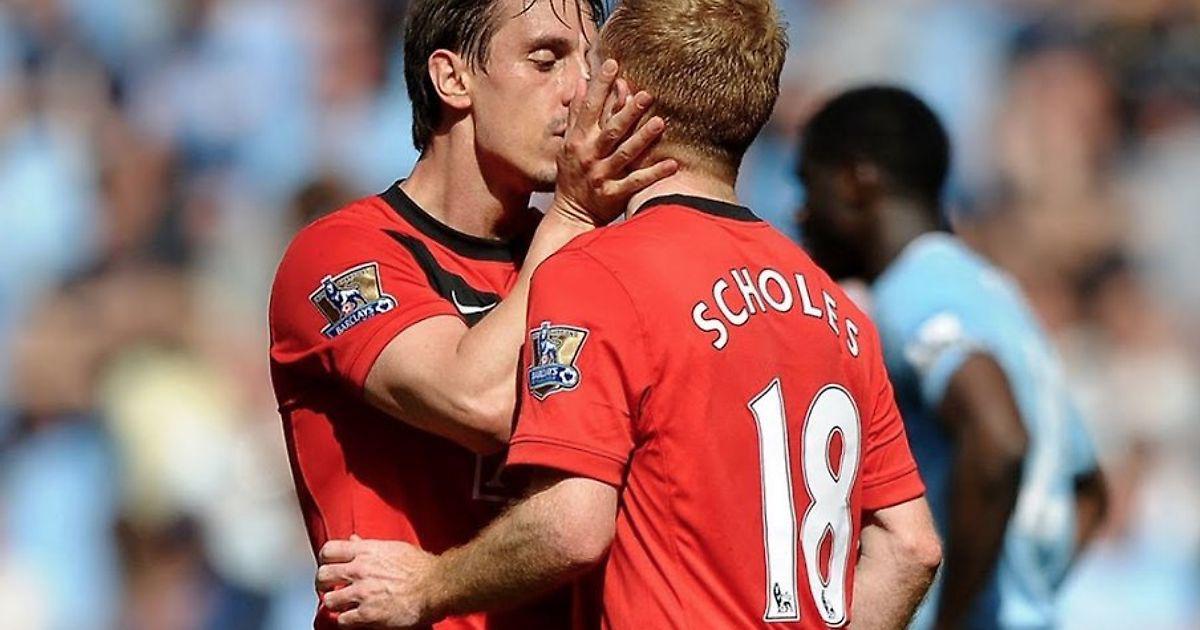 8 лет назад Невилл поцеловал Скоулза в прямом эфире