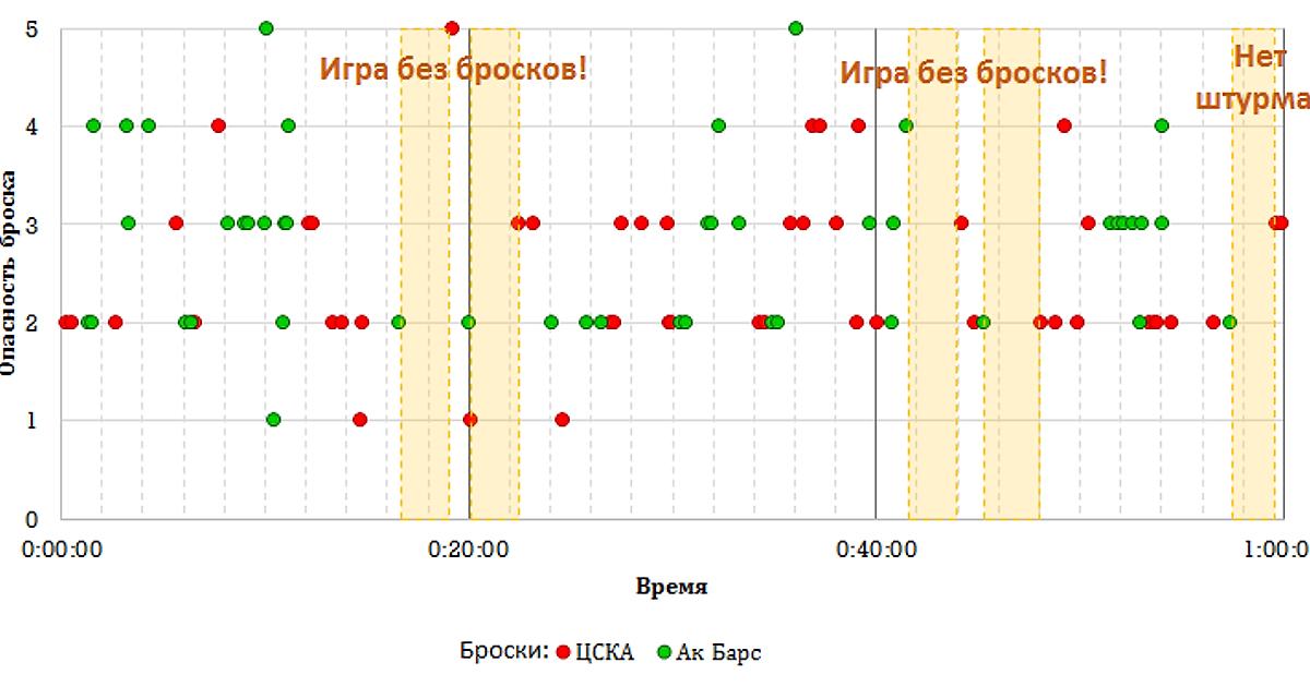В общем, анализ бросковой активности дает серьезную пищу для размышлений. Армейцы чересчур увлекаются бросками из дальней дистанции и наносят недостаточно бросков с ближних подступов к воротам. Ситуация с бросками в большинстве близка к катастрофической. У казанцев же в целом все нормально, но мы еще посмотрим как изменится ситуация на домашней площадке ЦСКА.