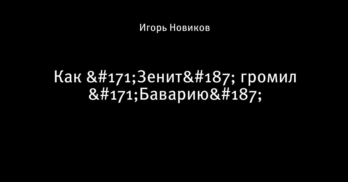 10 марта 2011, 08:48 Как «Зенит» громил «Баварию» Одно из самых приятных российских еврокубковых воспоминаний... форум Телевизор 3.0 Автор Игорь Новиков