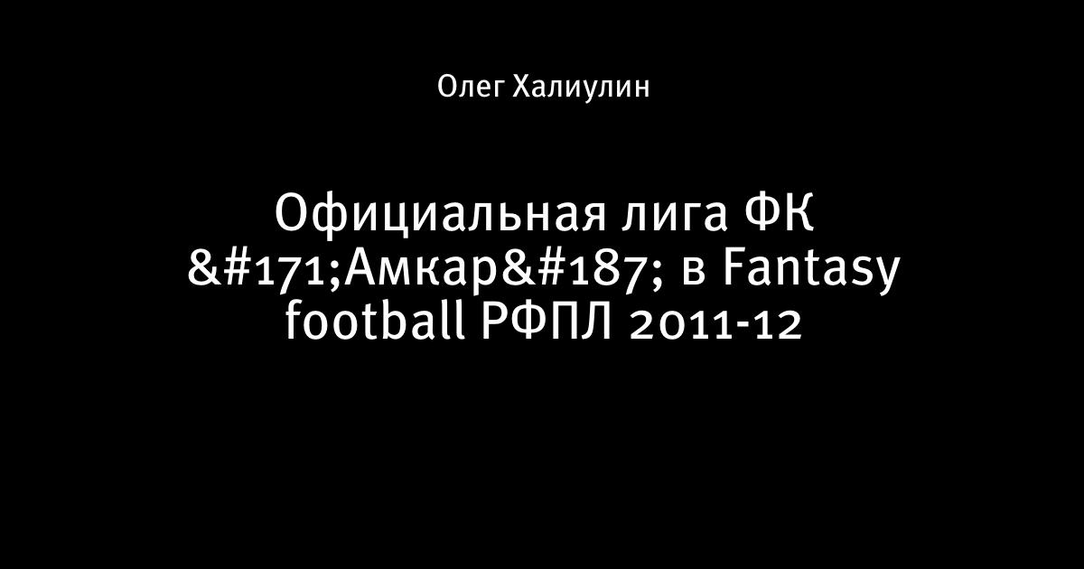 Официальная лига ФК «Амкар» в Fantasy football РФПЛ 2011-12