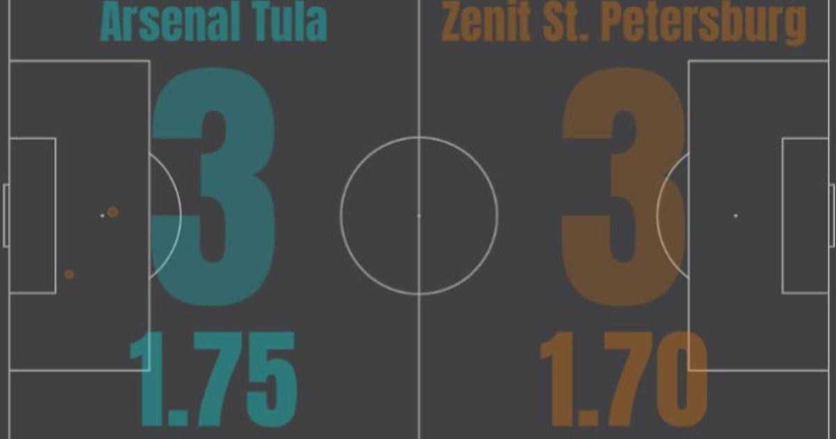 Арсенал растягивал последнюю линию, постоянно создавая ширину атаки, ситуация требовала сдвоенных флангов, чтобы кто-то из группы атаки садился 5 или даже 6 защитником. Что-то похожее эпизодами показывал Краневиттер, когда уходил из опорной зоны глубоко на фланг, но простейший перевод на другой фланг ставил эту проблему уже там, необходимо было симметричное решение. Если выход Кузяева в центр оправдался и был логичен, то последняя потраченная замена на Ригони, не дала Зениту ничего. Как следствие этой проблемы 7 передач Арсенала под удар с фланговых или близких зон. Интересно, что в первые 23 минуты, когда Зенит играл 3-4-3, была лишь одна такая передача (голевая Дзюбы), но это лишь формально, Горбатенко сам протащил мяч на дриблинге в более выгодную позицию и пробил с дистанции и острого угла. Самым логичным решением было сохранить 5ку защитников (конечно без Скроботова и Краневиттера), убрать кого-то из нападающих и перестроиться на 5-3-2 по которой Зенит играл лучше последние матчи, против Арсенала схема бы решила часть проблем. На тепловой карте Арсенала хорошо видно, что в финальной трети центр их почти не интересовал. Гол Дзюбы в концовке не следствие этой проблемы, но ряд опасных моментов туляки создали именно передачами с флангов.