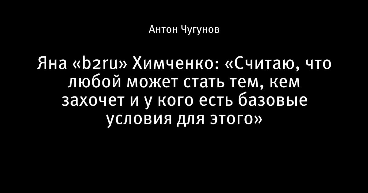 Яна «b2ru» Химченко: «Считаю, что любой может стать тем, кем захочет и у кого есть базовые условия для этого»