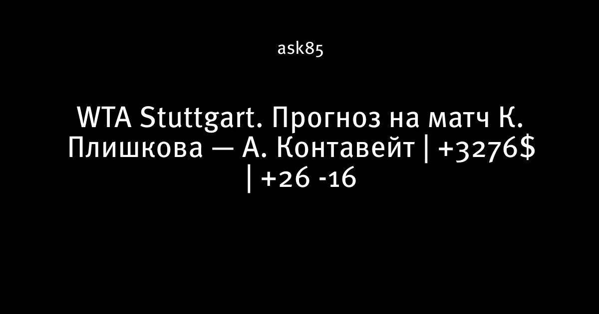 WTA Stuttgart. Прогноз на матч К. Плишкова — А. Контавейт | +3276$ | +26 -16