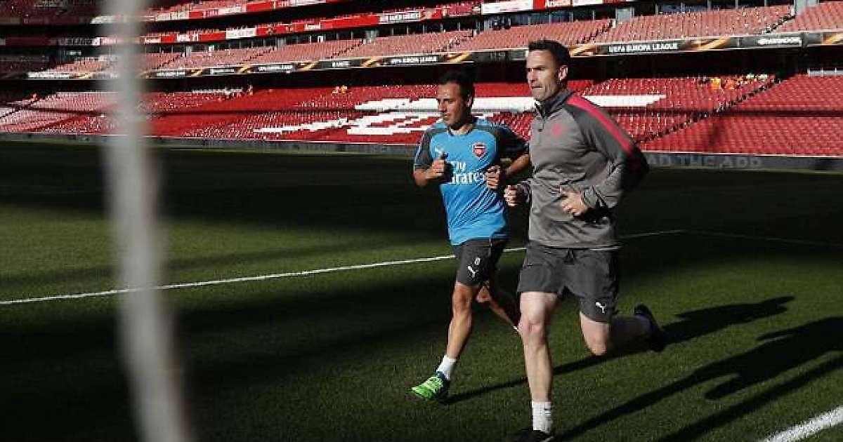Санти пробежал вокруг поля и немного поработал с мячом.