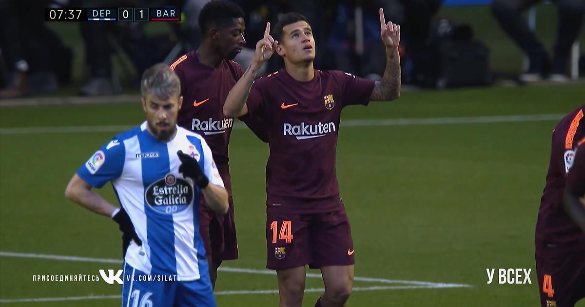 «Барселона» обыграла «Депортиво» (4:2) в 35-м туре примеры. После победы каталонцы в 25-й раз стали чемпионами Испании. А счет в матче открыл Филиппе Коутиньо с передачи Усмана Дембеле.