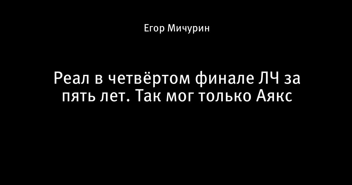 Реал в четвёртом финале ЛЧ за пять лет. Так мог только Аякс
