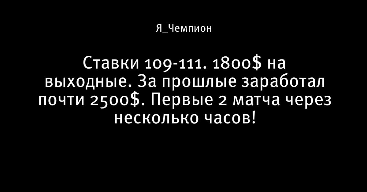 Ставки 109-111. 1800$ на выходные. За прошлые заработал почти 2500$. Первые 2 матча через несколько часов!