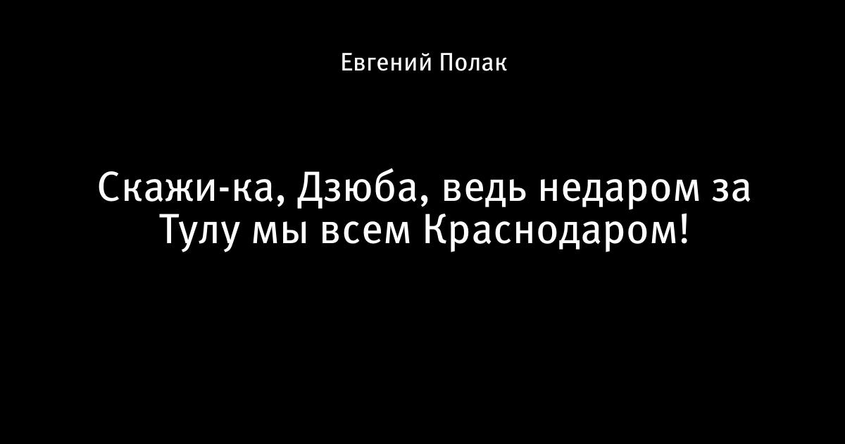 Скажи-ка, Дзюба, ведь недаром за Тулу мы всем Краснодаром!