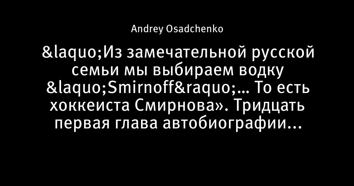 «Из замечательной русской семьи мы выбираем водку «Smirnoff»… То есть хоккеиста Смирнова». Тридцать первая глава автобиографии Эспозито