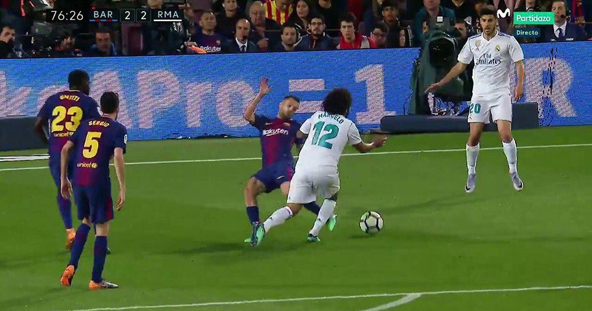77`мин. 100% неназначенный пенальти за удар Джессики Альбы по ноге Марсело в штрафной. Повтор показал, что пенальти должен был быть — Альба ударил в голеностоп и сбил бразильца.