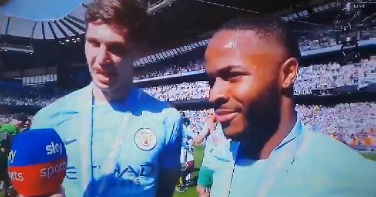 Венсан Компани облил Рахима Стерлинга шампанским во время интервью. Послушайте реакцию Стерлинга.