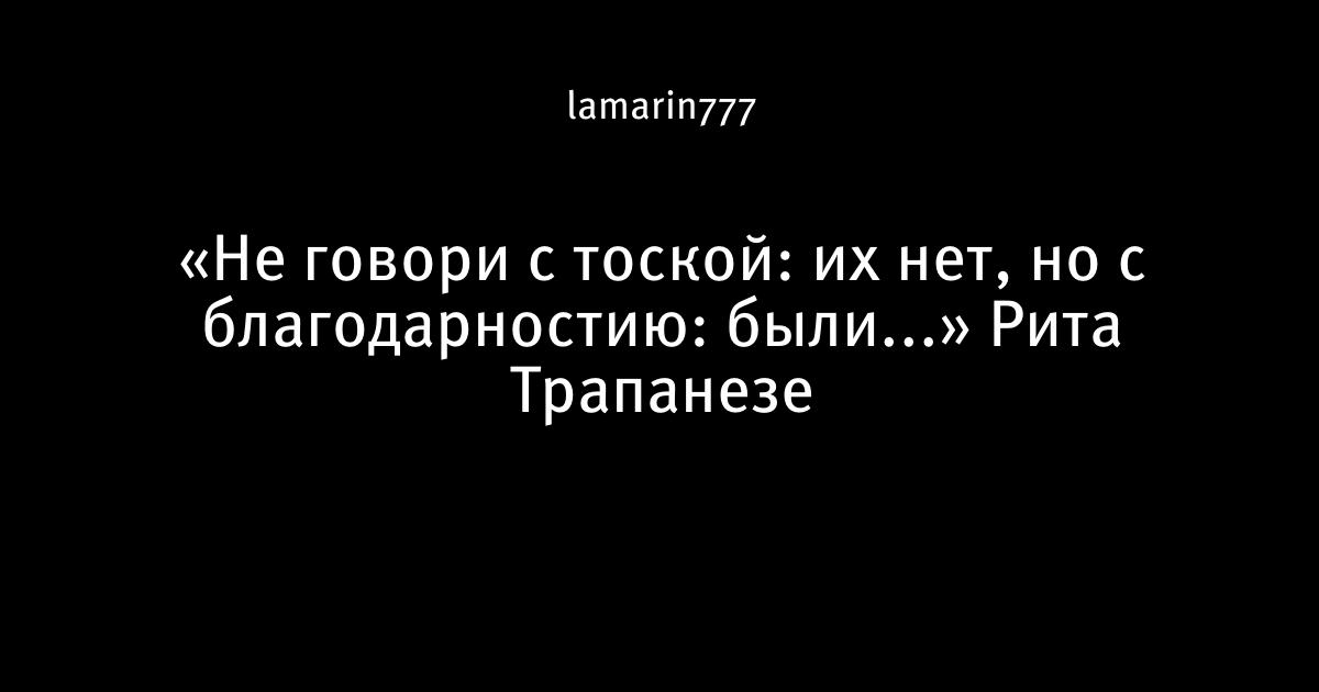 «Не говори с тоской: их нет, но с благодарностию: были...» Рита Трапанезе