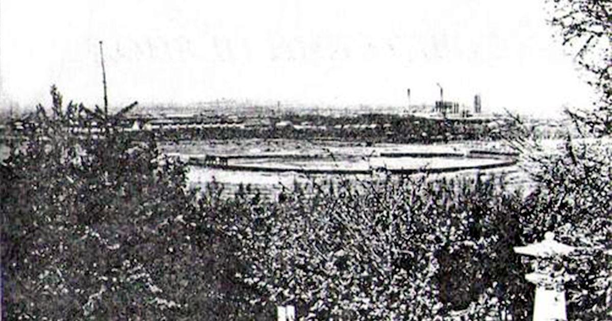 Вид на бейсбольный стадион с велотреком в центральном парке Тоёхары