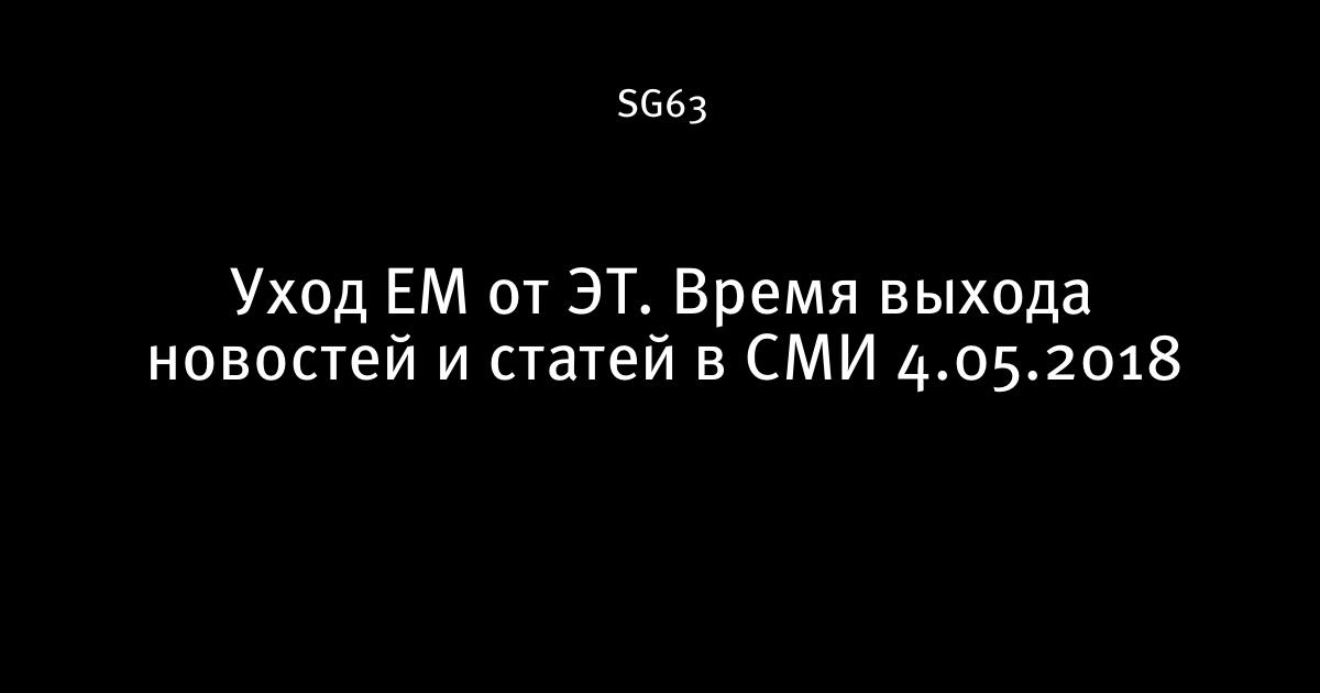 Уход ЕМ от ЭТ. Время выхода новостей и статей в СМИ 4.05.2018
