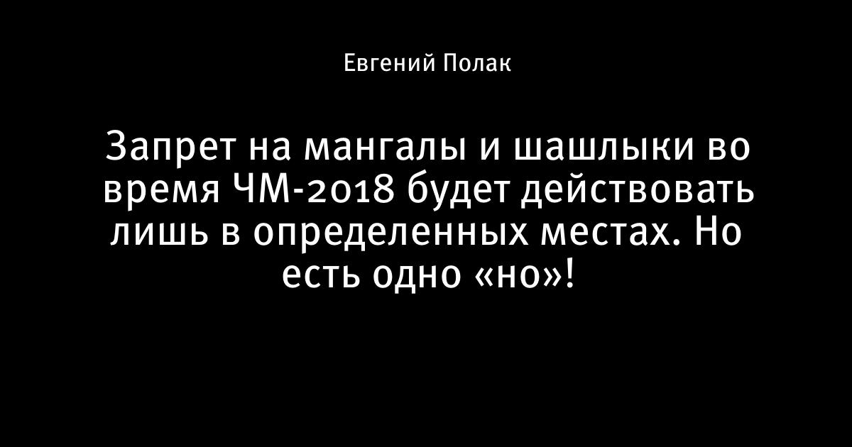 Запрет на мангалы и шашлыки во время ЧМ-2018 будет действовать лишь в определенных местах. Но eсть одно «но»!