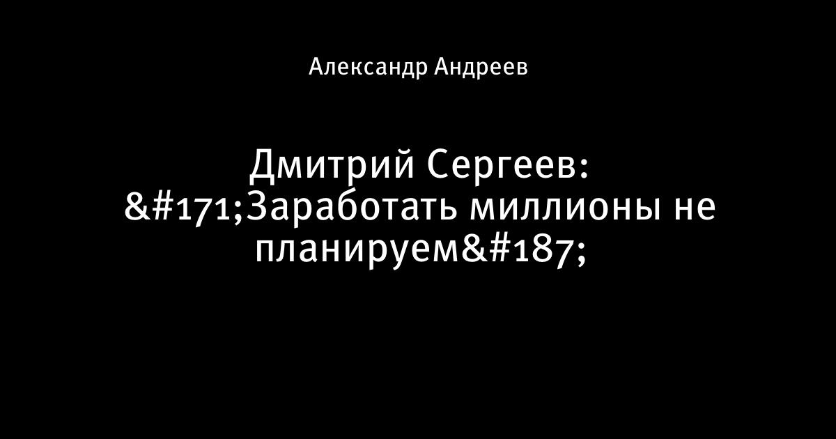 Дмитрий Сергеев: «Заработать миллионы не планируем»