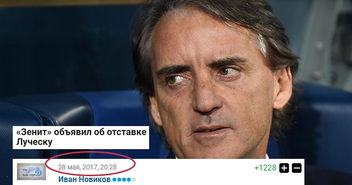 Пользователь Sports.ru Иван Новиков предсказал увольнение итальянца год назад – как раз под новостью об отставке предыдущего тренера питерского клуба.
