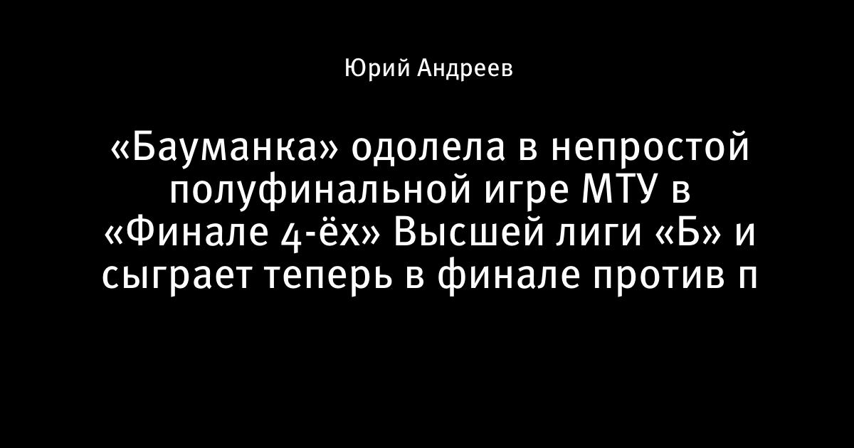 «Бауманка» одолела в непростой полуфинальной игре МТУ в «Финале 4-ёх» Высшей лиги «Б» и сыграет теперь в финале против принципиального оппонента в лице МПГУ
