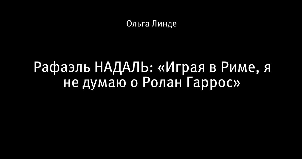 - Я здесь для того, чтобы играть. А уж потом постараться победить. Никогда не рассматривал ни один турнир как подготовку к другому. Никогда не подходил ни к одному из них – Монте-Карло, Барселона, Мадрид, Рим, - как в подводке к РГ. Каждый турнир важен сам по себе. Для меня – в особенности. Потому что у меня на всех этих турнирах была прекрасная история. В Риме я побеждал семь раз. Для меня возможность играть здесь – всегда нечто особенное. Так что я могу выиграть РГ, проиграв в Риме, могу выиграть РГ, победив здесь. Не думаю, что то, что может тут произойти и произойдет, окажет какое-то существенное влияние на то, что будет через две недели.