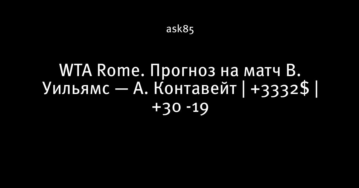WTA Rome. Прогноз на матч В. Уильямс — А. Контавейт | +3332$ | +30 -19
