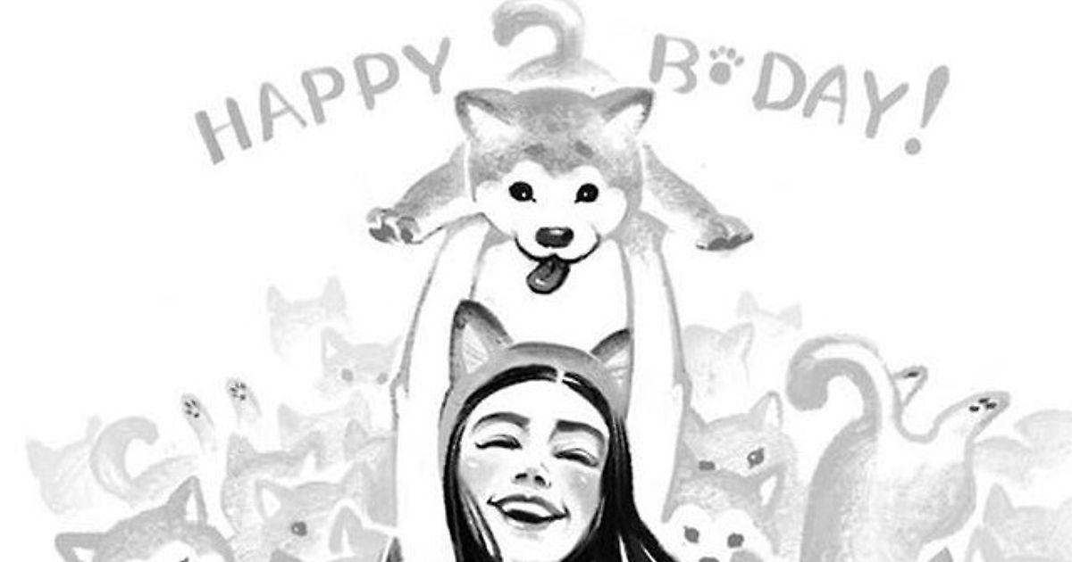 На рисунке изображена фигуристка Алина Загитова с собаками ее любимой породы – акита-ину.