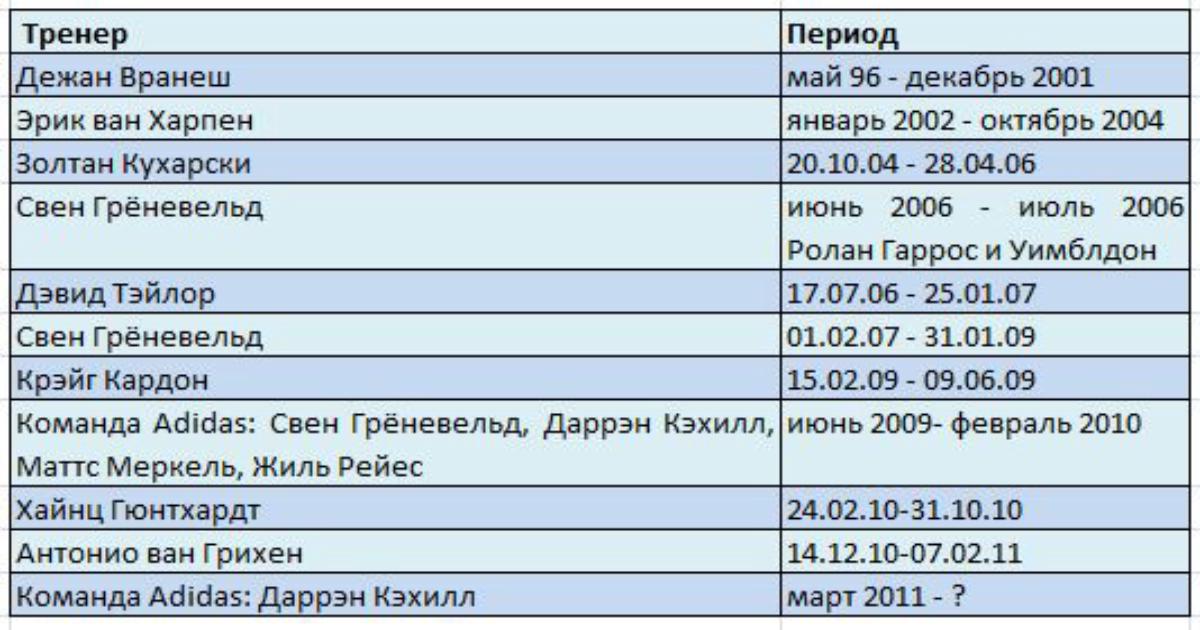 Я читал что она рассталась тренером по физподготовке. Она меняет тренеров как перчатки. Мало работает. Вон у Маши и Динары они возвратились после тяжелых травм. А у Иванович не было серьезных травм такого масштаба как у Маши и Динары. Так что пускай работает больше а то занимаеться чорт знает чем