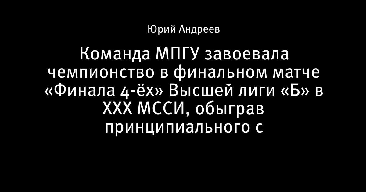 Команда МПГУ завоевала чемпионство в финальном матче «Финала 4-ёх» Высшей лиги «Б» в ХХХ МССИ, обыграв принципиального с