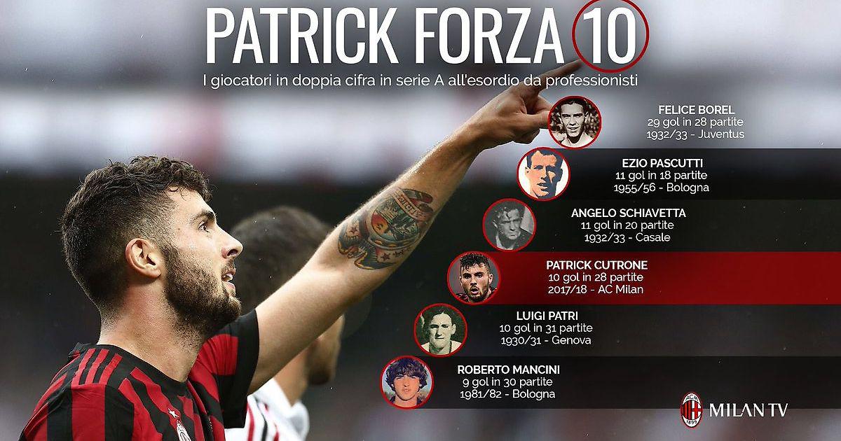 Клубный телеканал напомнил о вчерашнем достижении 20-летнего бомбардира "Милана". Патрик Кутроне стал первым футболистом Серии А за последние 60 лет, сумевшим забить не менее десяти мячей в дебютном сезоне.