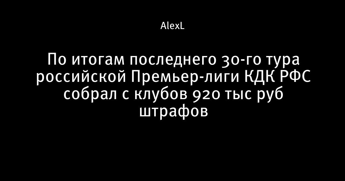 По итогам последнего 30-го тура российской Премьер-лиги КДК РФС собрал с клубов 920 тыс руб штрафов