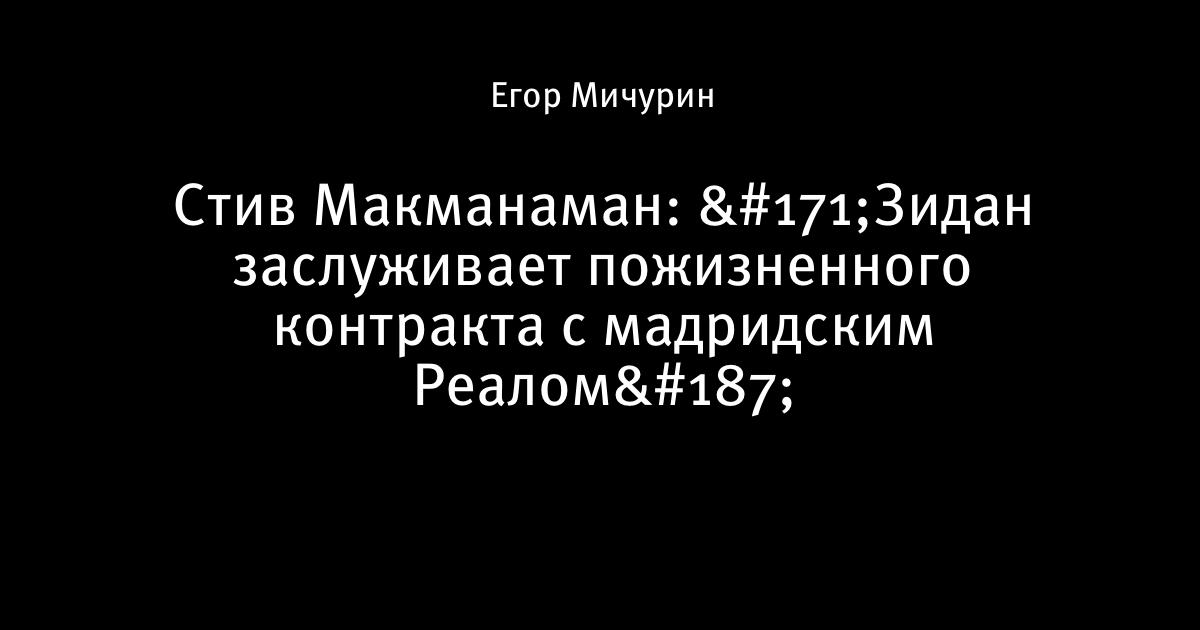 Стив Макманаман: «Зидан заслуживает пожизненного контракта с мадридским Реалом»
