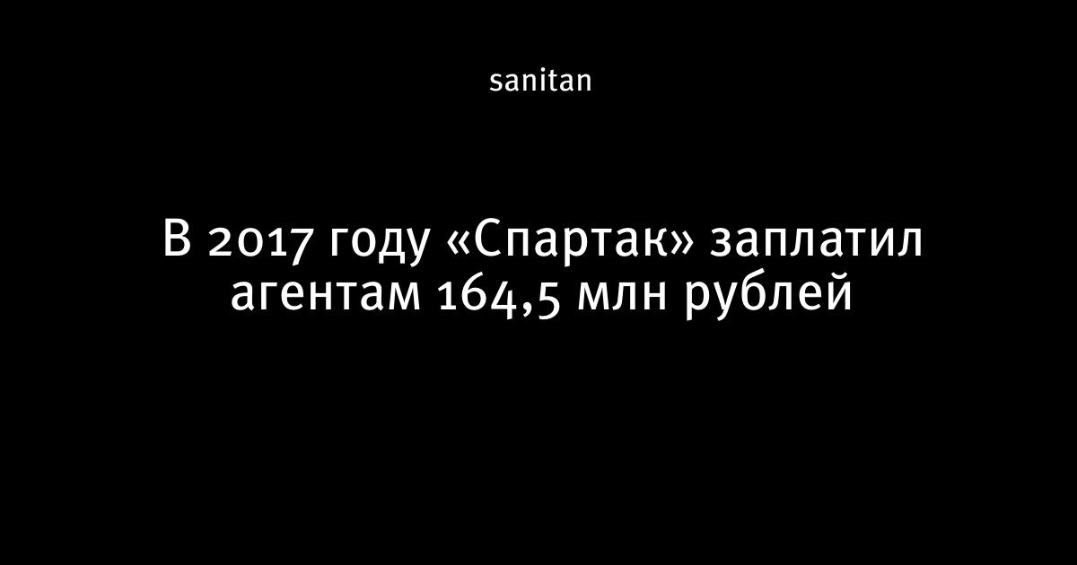 В 2017 году «Спартак» заплатил агентам 164,5 млн рублей