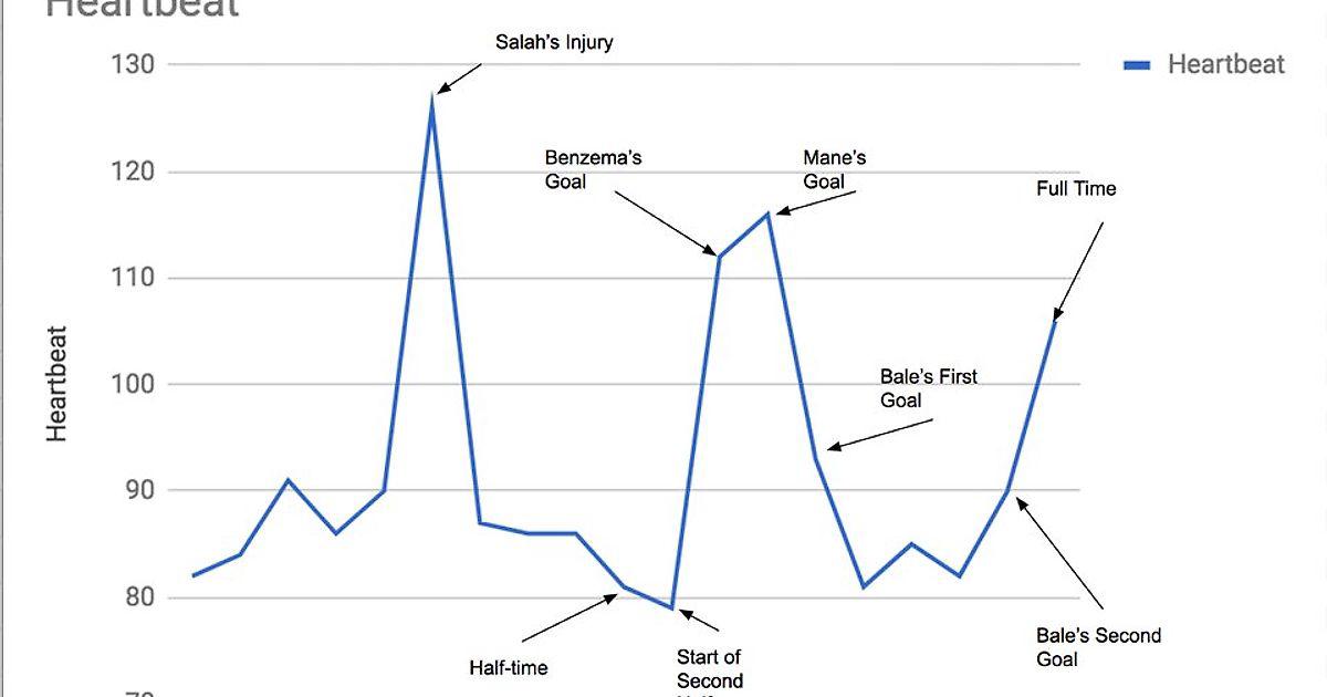 Один из болельщиков «Ливерпуля» замерил свой пульс во время финала Лиги чемпионов и составил график.