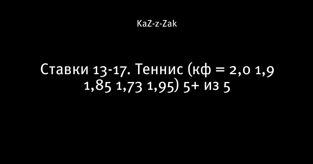 Ставки 13-17. Теннис (кф = 2,0 1,9 1,85 1,73 1,95) 5+ из 5