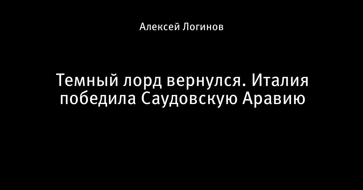 Темный лорд вернулся. Италия победила Саудовскую Аравию