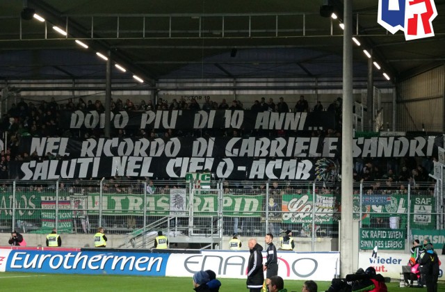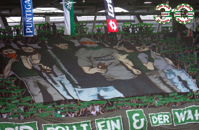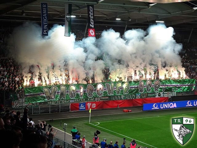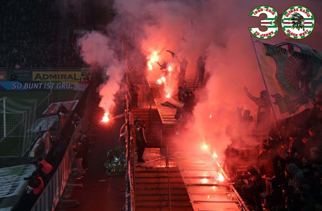 На этой игре фанаты "Рапида" сделали крайне провокационный перфоманс - "фак" во всю трибуну! Но адресован он был не врагам из Граца, а журналистам, пишущим откровенную желтуху и хyету про фанатов.
