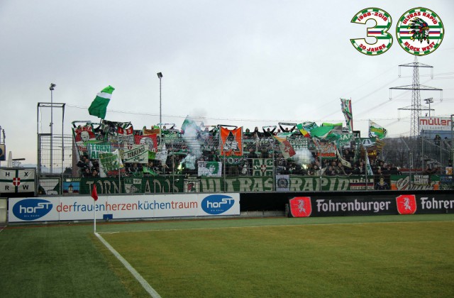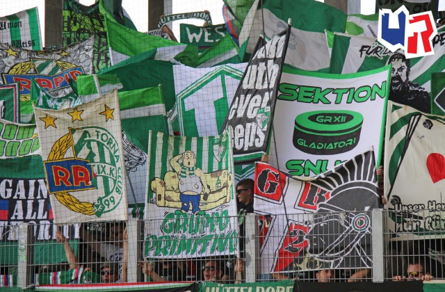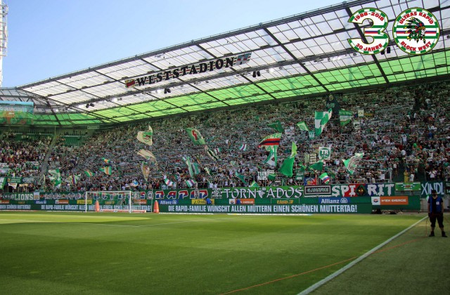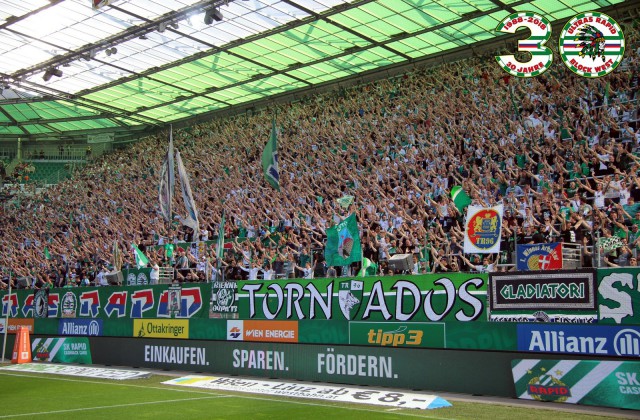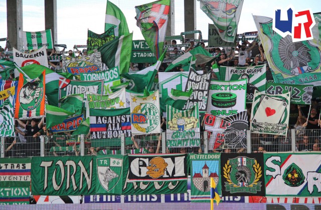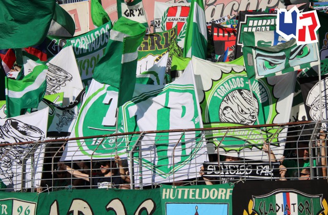 Закрывали сезон футболисты "Рапида" гостевой игрой против клуба "Вольфсбергер". Эффектного закрытия сезона не получилось ни на поле, ни на трибунах. Матч завершился 0:0, а на трибунах можно отметить лишь маленькую акцию с использованием флажков в цвета "Рапида", а также двуручников с логотипом ультрас-группы "Tornados Rapid".