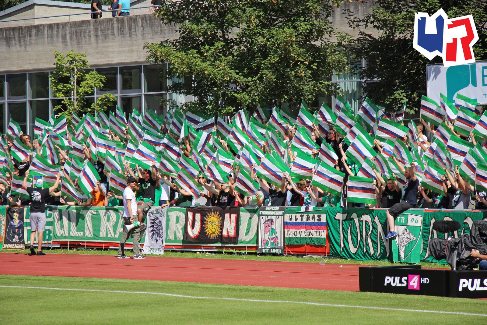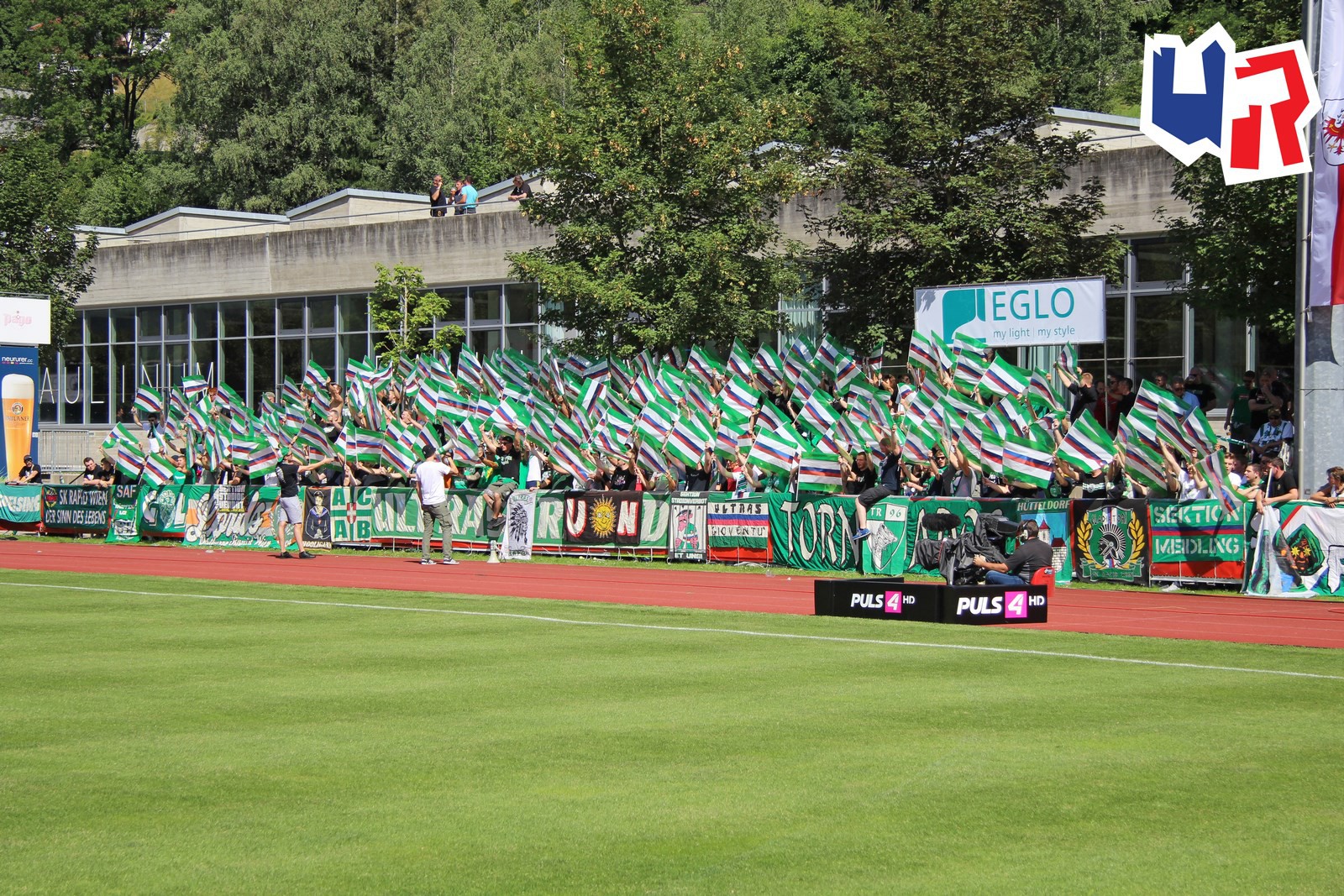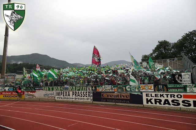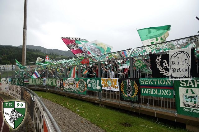 Официальный сезон для "Рапида" открывался кубковым матчем против клуба "Швац" из одноименного города. Пусть неизвестность данного клуба вас не смущает - "Швацу" на сегодняшний момент целых 97 лет! Стадиончик в Шваце вмещает всего 2.000 человек, поэтому аншлаг на игре был легко предсказуем. Ультрас "Рапида" украсили гостевую трибуну большим количеством однотипных флагов - смотрелось очень эффектно!
