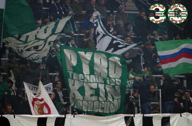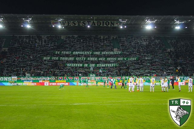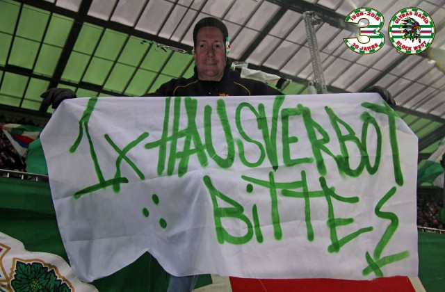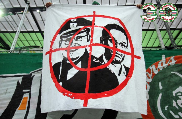 Помимо этого баннера, также фанаты "Рапида" прокачали еще несколько тем, среди которых выделяется лозунг "Scheiss Bundesliga" (в переводе, думаю, не нуждается) - это аналог девиза войны немецких фанатов с чиновниками Бундеслиги. О том противостоянии вы могли читать ранее в этом блоге ТУТ. Надо отметить, что в этом вопросе клуб встал на сторону своих фанатов и написал открытое письмо в адрес футбольной лиги Австрии.