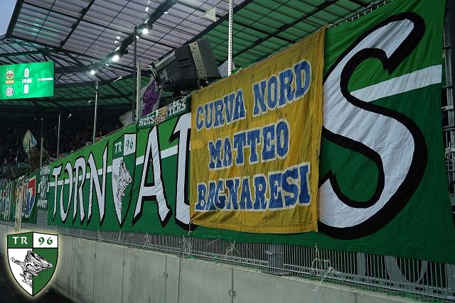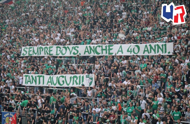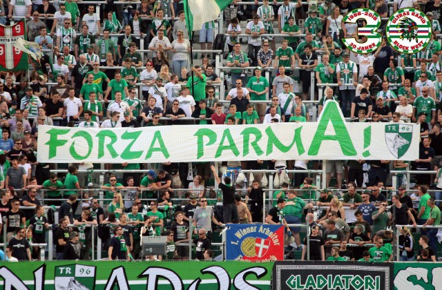 Ну и баннер в адрес друзей венских фэнов - тифози "Пармы", чья команда триумфально вернулась в Серию А! "Парме" удалось это сделать всего лишь за 3 года, то есть она повышалась на одну лигу выше ежегодно!