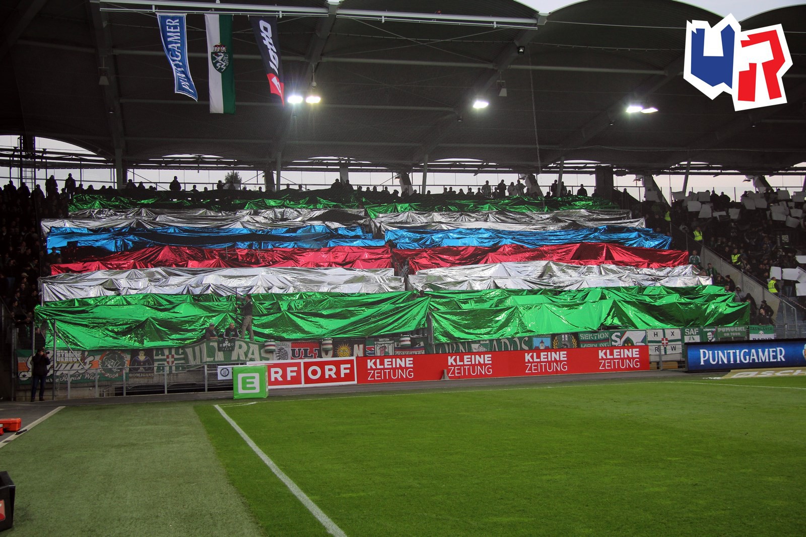 Снова очень яркая трибуна от "Рапида", украшенная стаффом. Отечественным фанатам в этом плане конечно есть чему поучиться у австрийских коллег.