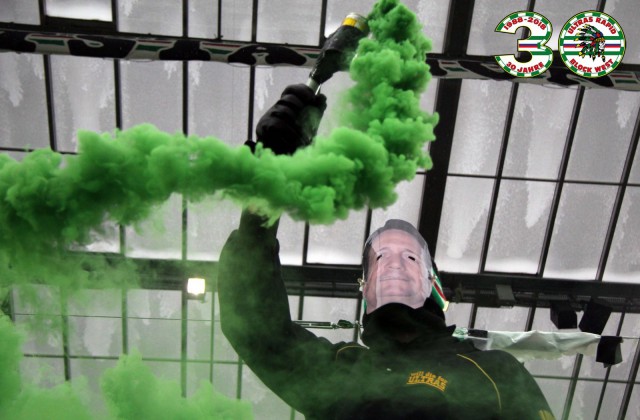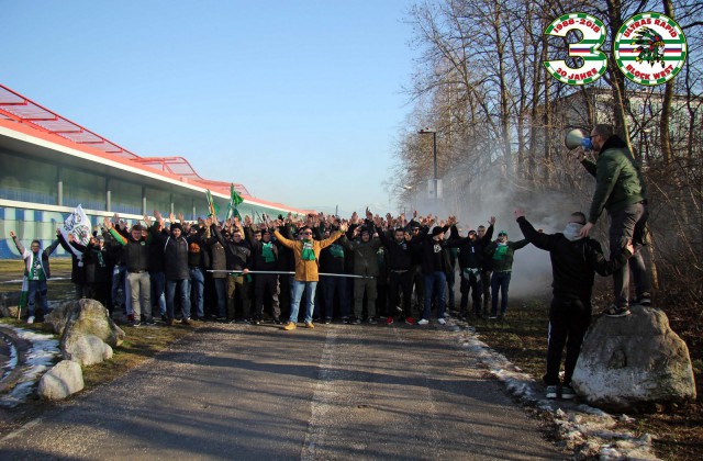 На домашней игре с "Вольфсбергером" зелено-белые отметили 10-летие с фанатами венгерского "Ференцвароша"! Надо отметить, что тогда адептами данного союза выступали ультрас-группы "Tornados Rapid" со стороны австрийцев и "Green Mosnters" со стороны венгров.
