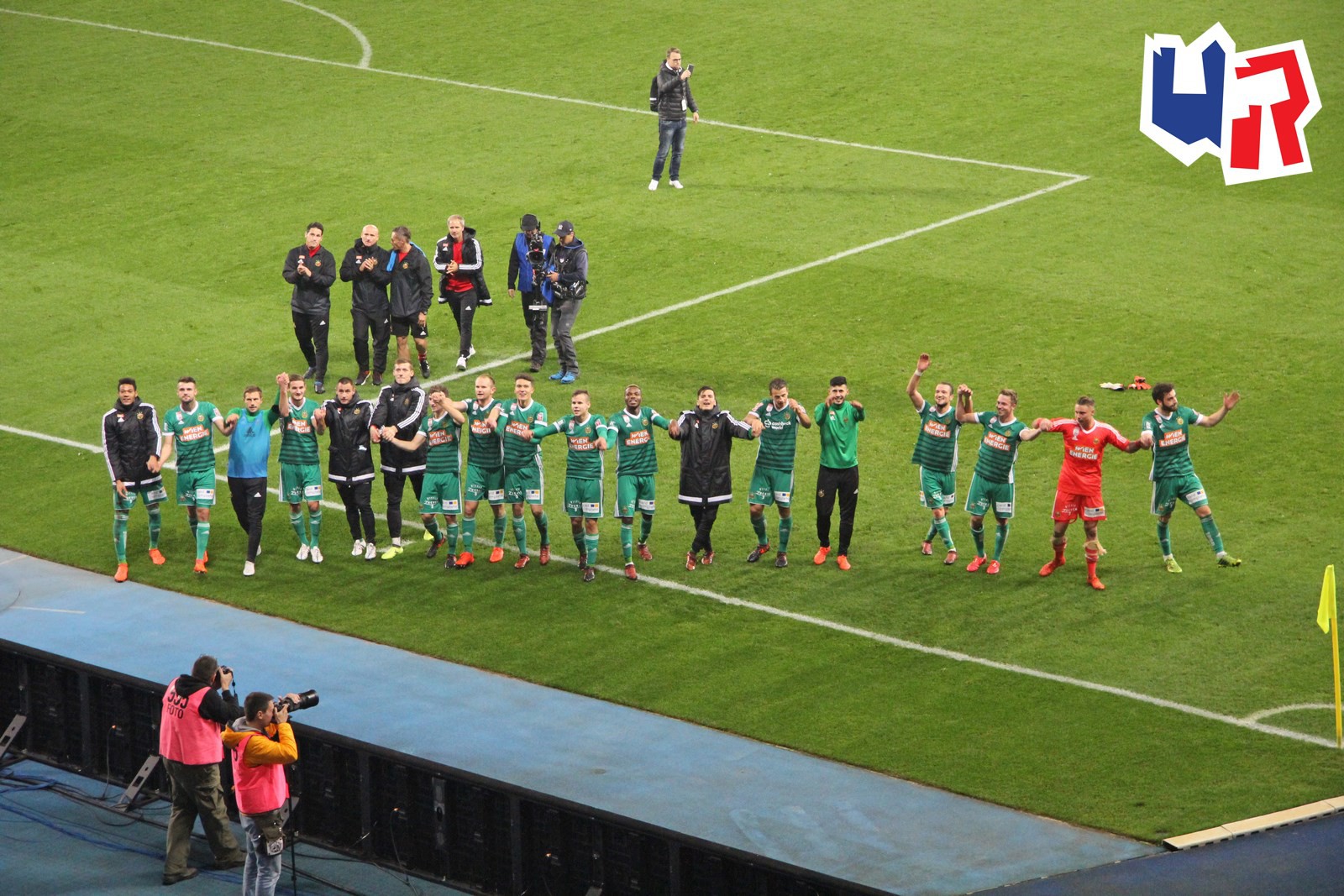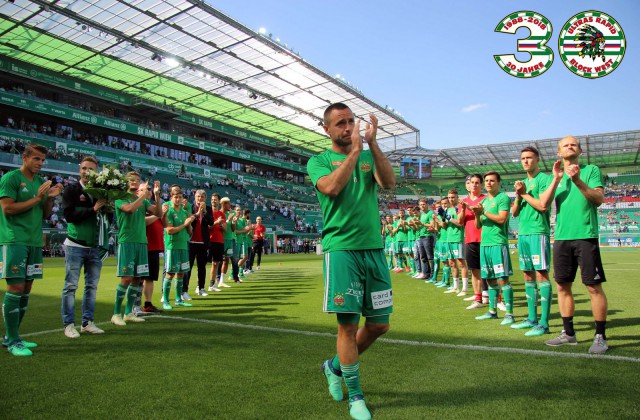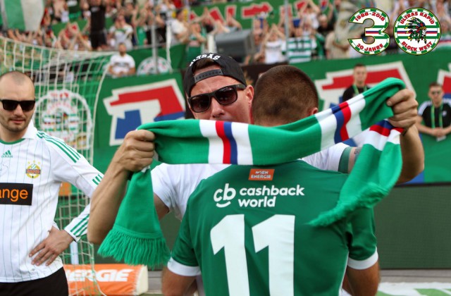 После матча игроки "Рапида" в полном составе подошли к гостевой клетке и поблагодарили своих фэнов за яркий сезон. Фанатьё ответило игрокам взаимностью и поздравило их с бронзовыми медалями чемпионата.