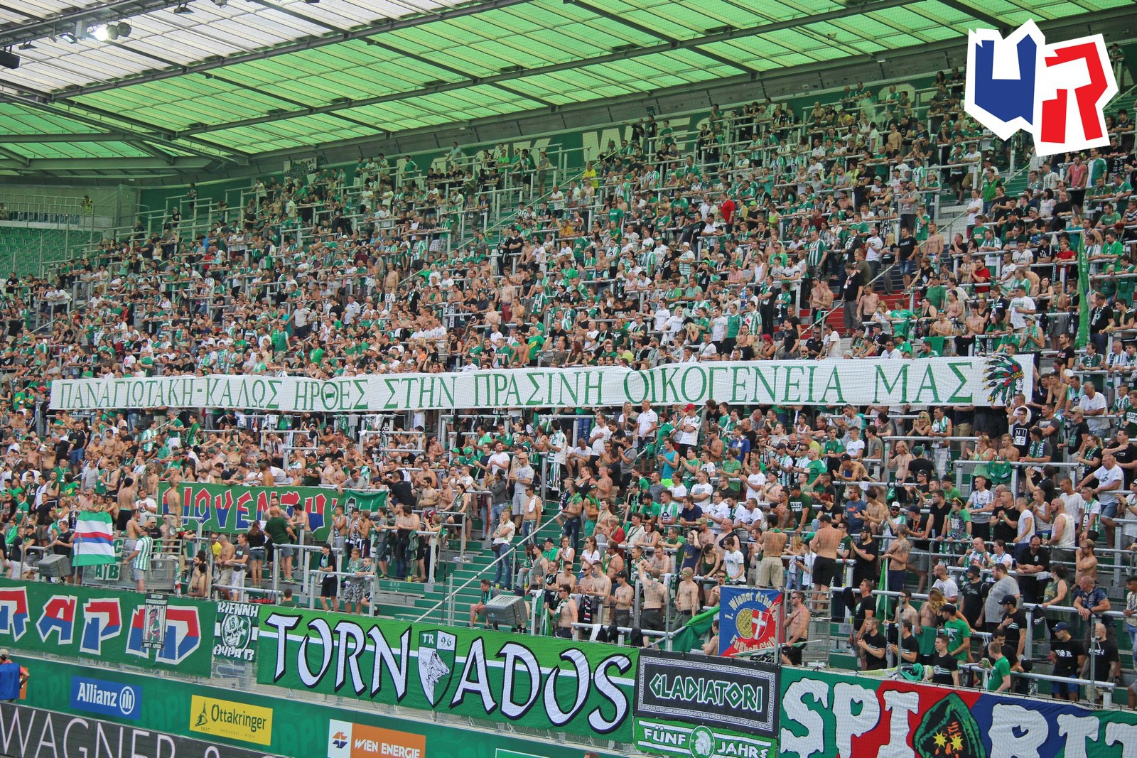 Также ультрас "Рапида" вывесили баннер на греческом языке - в знак дружбы с фанатами "Панатинайкоса".