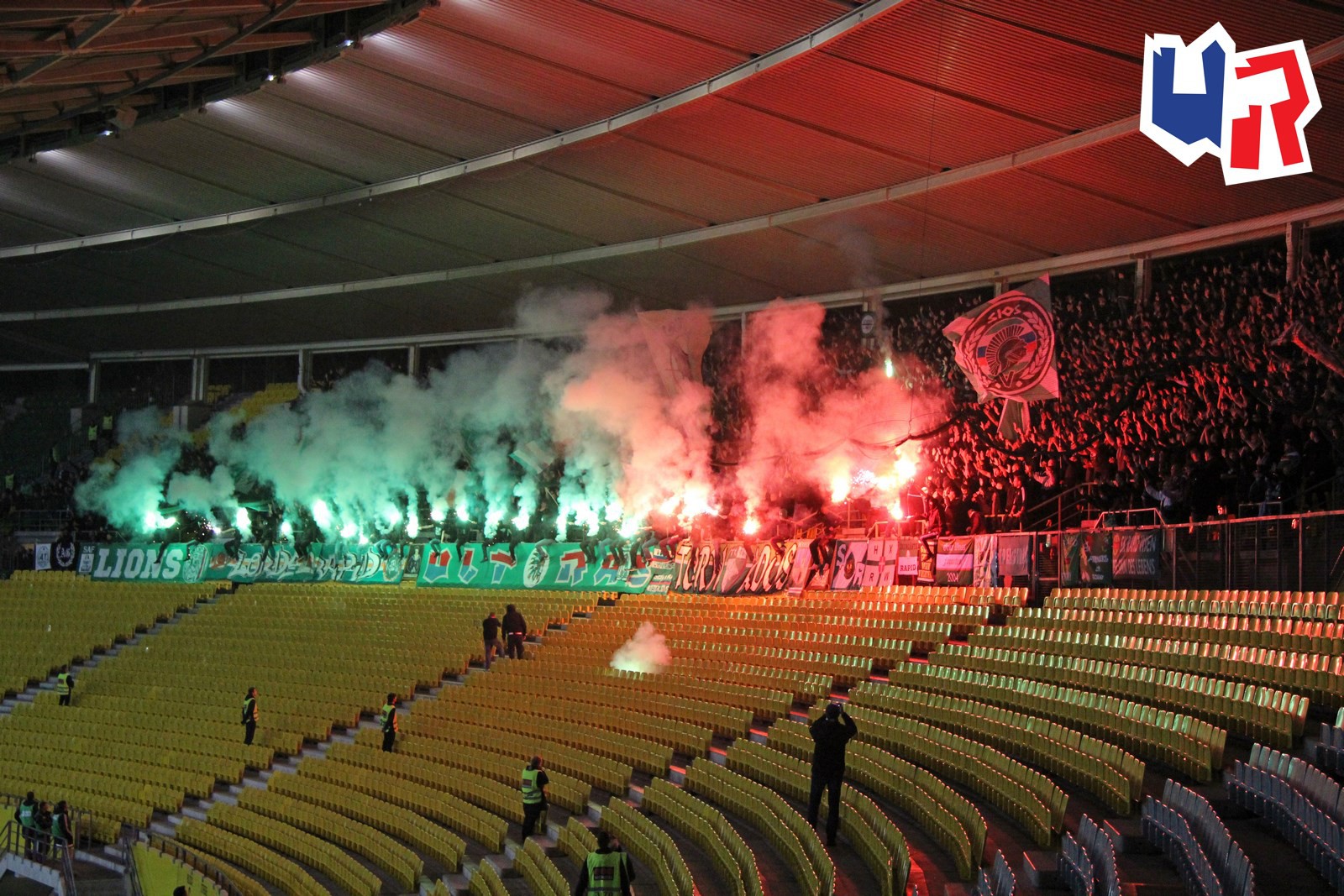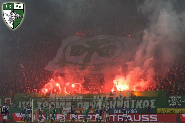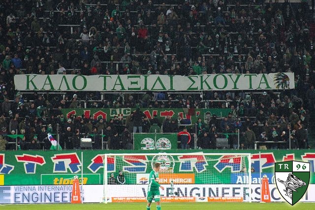 Помимо фанатов "Панатинайкоса" на это дерби приехал еще целый друзей "Рапида" - в частности тифози "Пармы" и фэны "Ференцвароша".