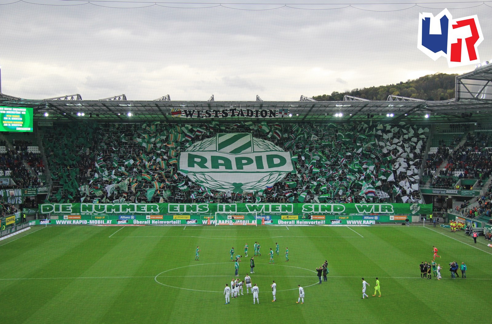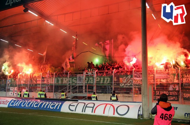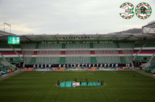 Футбольные чиновники забанили фанатскую западную трибуну на эту игру. Чтобы избежать альтернативной фанатской трибуны, они запретили открывать для фанатов и противоположную заворотку. Тогда фанаты договорились с клубом о том, что будет открыт угловой сектор. Лига была очень этим недовольна этим, однако ничего поделать не могла, так как чисто юридически "Рапид" действовал в рамках закона. Ультрас "Рапида" с простым, но эффектным перфомансом на угловом секторе: