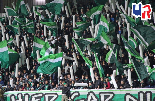 Сам по себе матч самый обычный+на трибуне ничего особенного, однако фэны из Вены в очередной раз демонстрируют, как с помощью стаффа (в частности, с помощью двуручников) на трибуне можно создать атмосферу праздника.