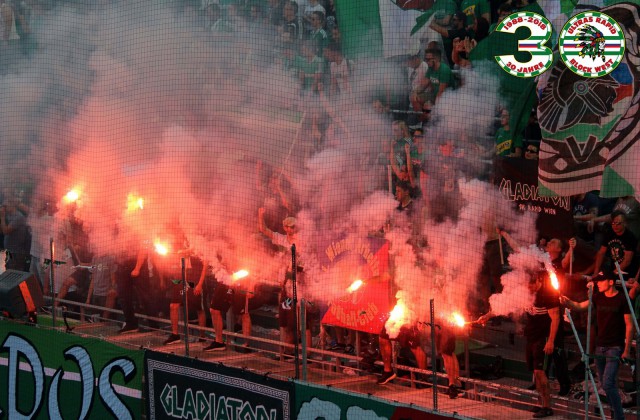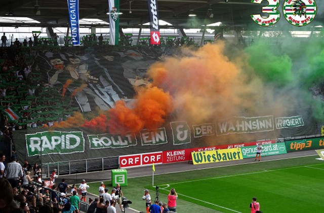 Сезон, который можно ознаменовать как год 30-летия фанатского объединения "Ultras Rapid", был очень ярким и насыщенным. Вообще "Рапид" смело можно внести в топ-5 фанатских движух минувшего сезона - наряду с "Легией", "Сент-Этьенном", "Црвеной Звездой" и "Штутгартом" (вместе с ним на одну ступень, правда говоря, можно вместить еще половину Германии, где фанатизм сегодня цветёт и пахнет. Фанатам "Рапида" удалось провести его на стабильно высоком уровне и без видимых падений в активности. Но давайте обо всём поподробнее.