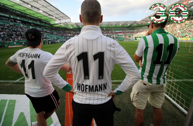 Многие болельщики, пришедшие в этот день на стадион "Альянц", были одеты в футболки Хофманна - с его изображением, с его фамилией или в форме "Рапида" с №11, под которым играл Штефан.